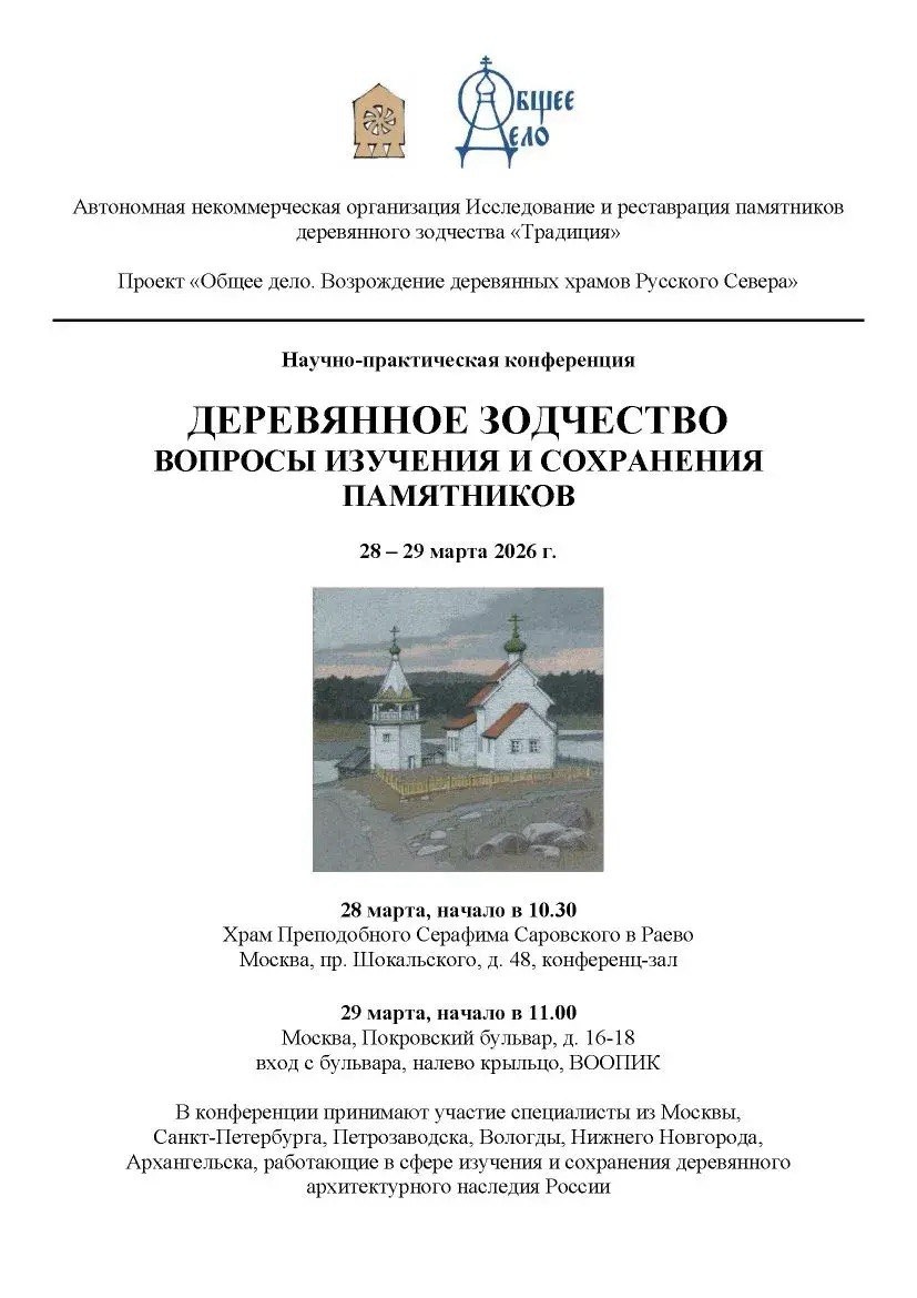 Приглашаем на ежегодную научно-практическую конференцию «Деревянное зодчество. Вопросы изучения и сохранения памятников».