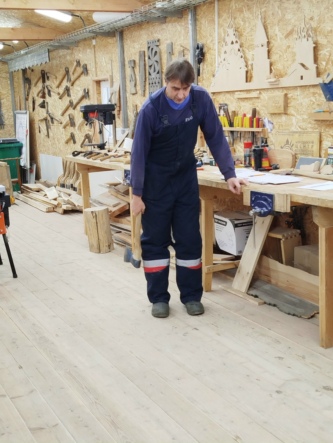Теория на этом курсе сразу же закрепляется практикой. На площадке центра учащиеся совершенствуют свои навыки владения традиционными плотницкими инструментами. Топор, скобель и долото – используя всего лишь эти три инструмента зодчие XVIII века строили удивительные по красоте и инженерным решениям храмы.