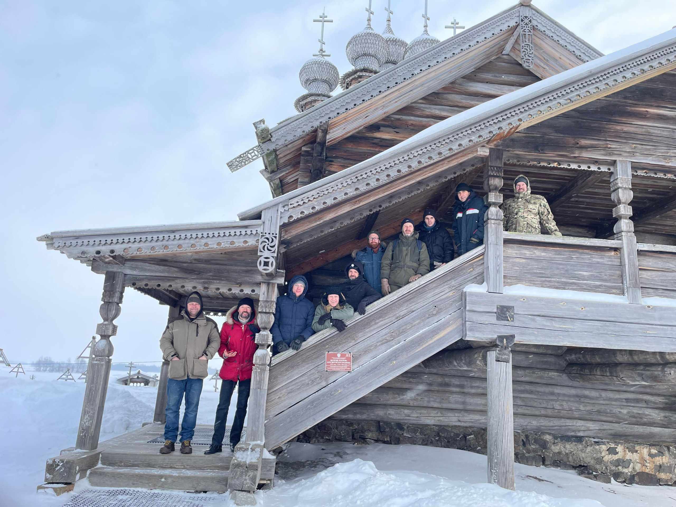 В течение недели ведущие специалисты музея-заповедника, реставраторы с огромным практическим опытом - Александр Юрьевич Любимцев и Андрей Львович Ковальчук будут делиться с командой «Общего Дела» своими знаниями и умениями, которые были приобретены ими, в том числе, и во время реставрации церкви Преображения Господня Кижского погоста. Например, сегодня курсанты смогли не только увидеть известный всему миру объект, который находится под охраной ЮНЕСКО, но и побывали там, куда обычно не водят туристов. В подклете храма Преображения Господня Александр Юрьевич рассказал о некоторых секретах сложнейшего реставрационного процесса, который длился более 30 лет, и показал какими методами сохраняется этот удивительный памятник деревянного зодчества сейчас. А с особенностями стропильной системы шатрового храма группа знакомилась в чердачном пространстве храма Покрова Пресвятой Богородицы.