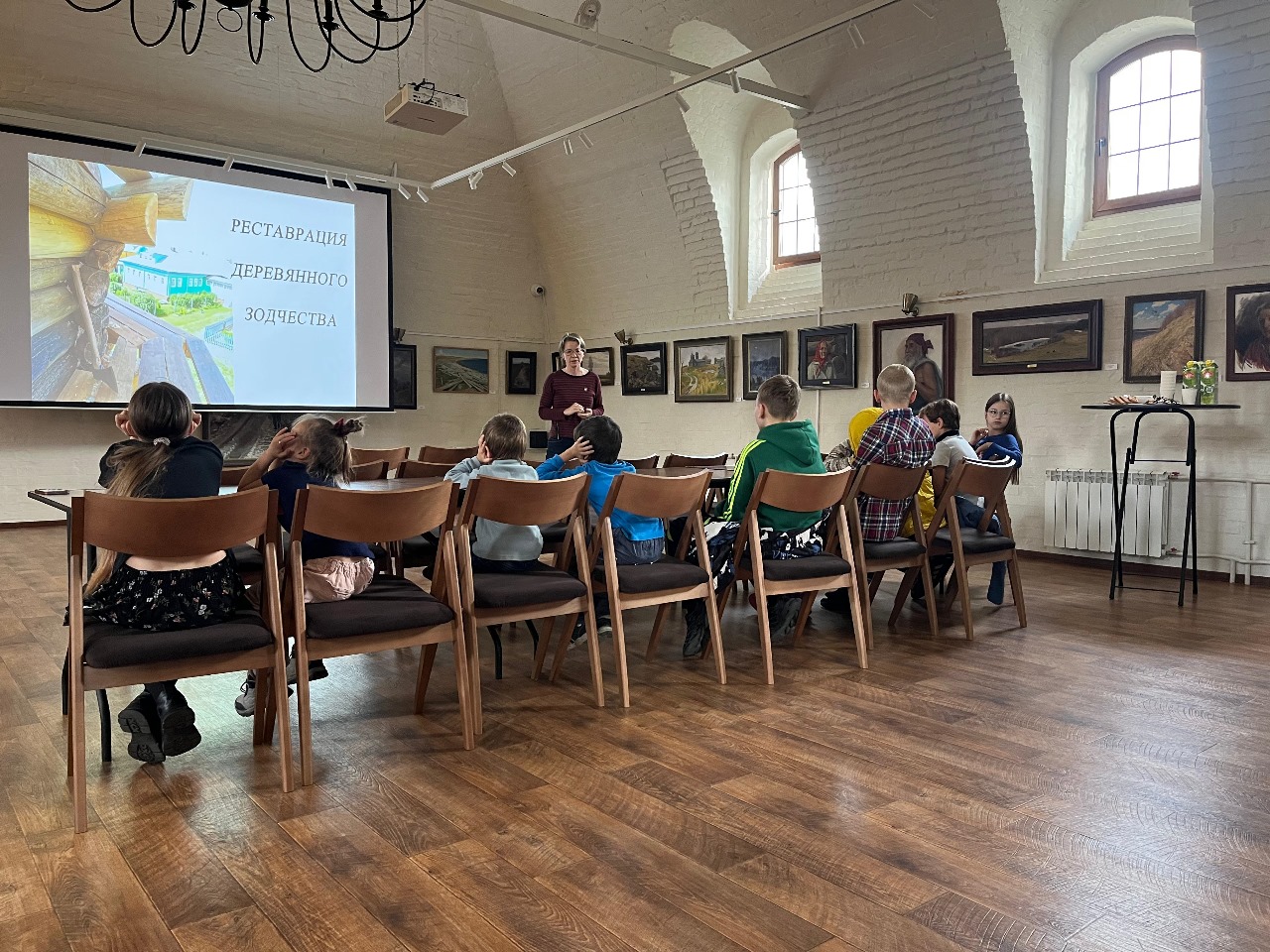Минувшее занятие было посвящено деревянному зодчеству. Наши "маленькие реставраторы" узнали об особенностях реставрации и сохранения памятников, построенных из дерева. Завершилось занятие экскурсией по деревянному амбару, отреставрированному силами добровольцев.