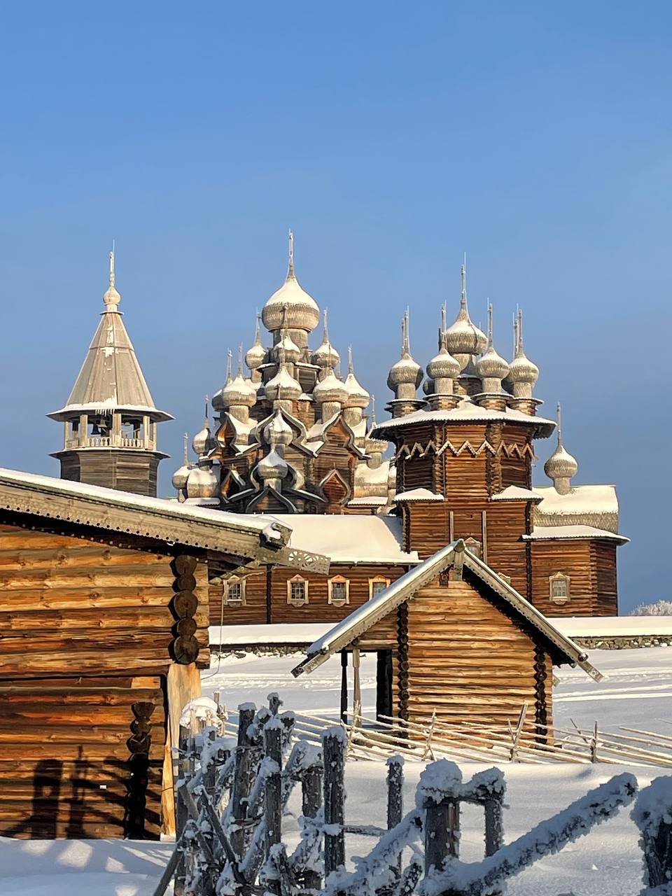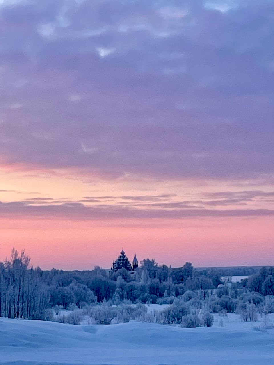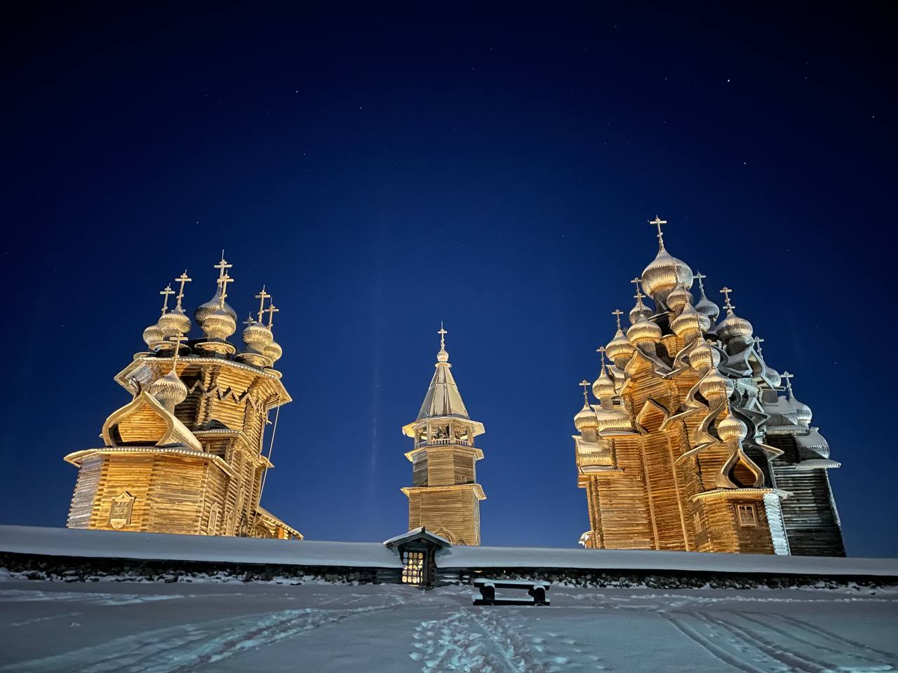 Редкие возможности в Кижах открывались почти ежедневно. В зимний период после 16:00 доступ туристов к Преображенскому и Покровскому храмам закрыт. Но организаторы курса получили разрешение и общедельцы смогли увидеть знаменитый Кижский погост во всем его ночном величии и великолепии.