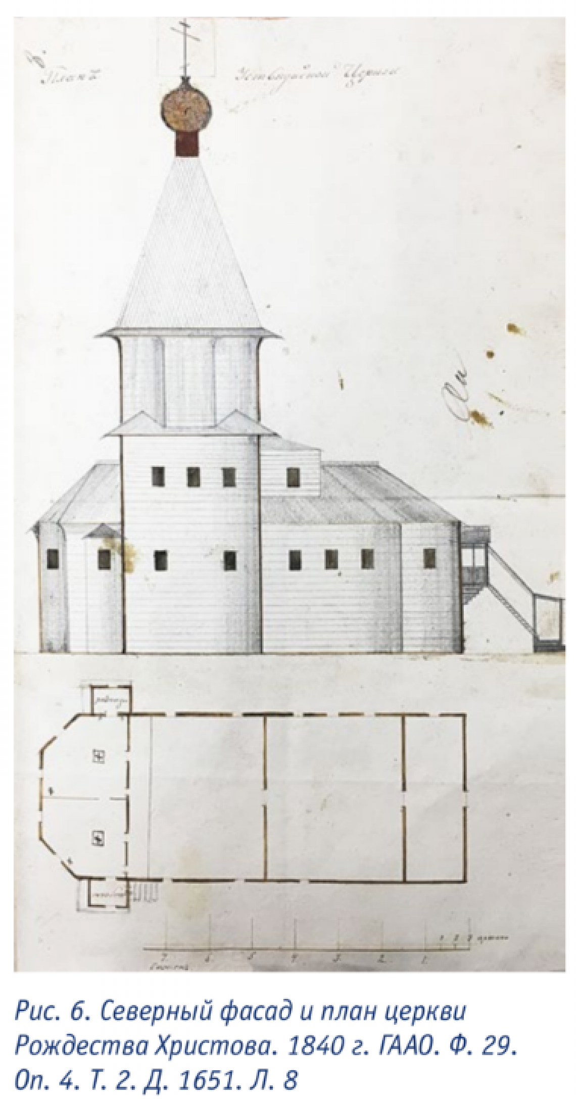 Христорождественский храм, упоминаемый в сотных грамотах начала XVII в., сгорел в 1712 г. Вместо него в 1729 г. был построен новый, освящен в 1731 г. Существовал до 1769 г. и по ветхости был заменен новым. Первоначально в храме было два престола: главный - в честь Рождества Христова, освящен 21.1.1770, и придельный - во имя Варлаама Важеского, освящен 16.2.1770. В 1776 г. в четверике храма был устроен третий престол - во имя сщмч. Власия (вместо древней часовни того же святого), освящен 7.9.1776 шенкурским протоиереем Михаилом Ключаревым. В 1841 г. придельный храм преп. Варлаама Важеского перенесен в верхний этаж. В 1877 г. Христорождественский храм был перенесен с небезопасного места на угоре р. Пуи и поставлен рядом с Богородицерождественским, при этом был упразднен престол во имя сщмч. Власия.