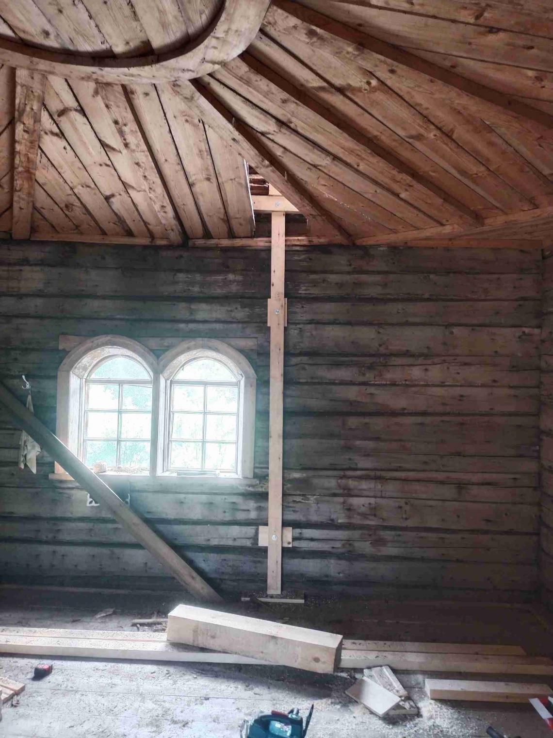 - укреплена сгнившая основная несущая балка над «небесами»;